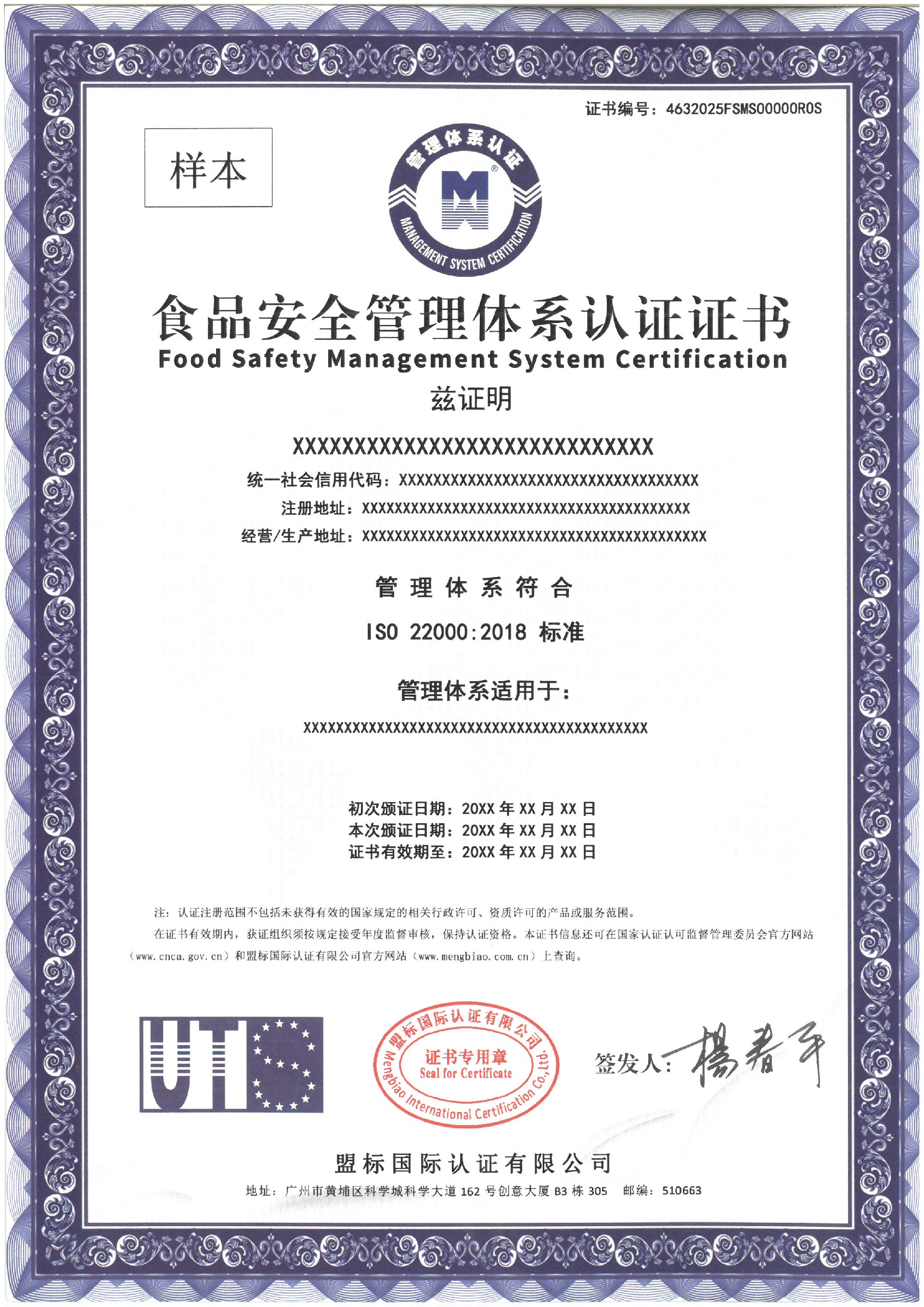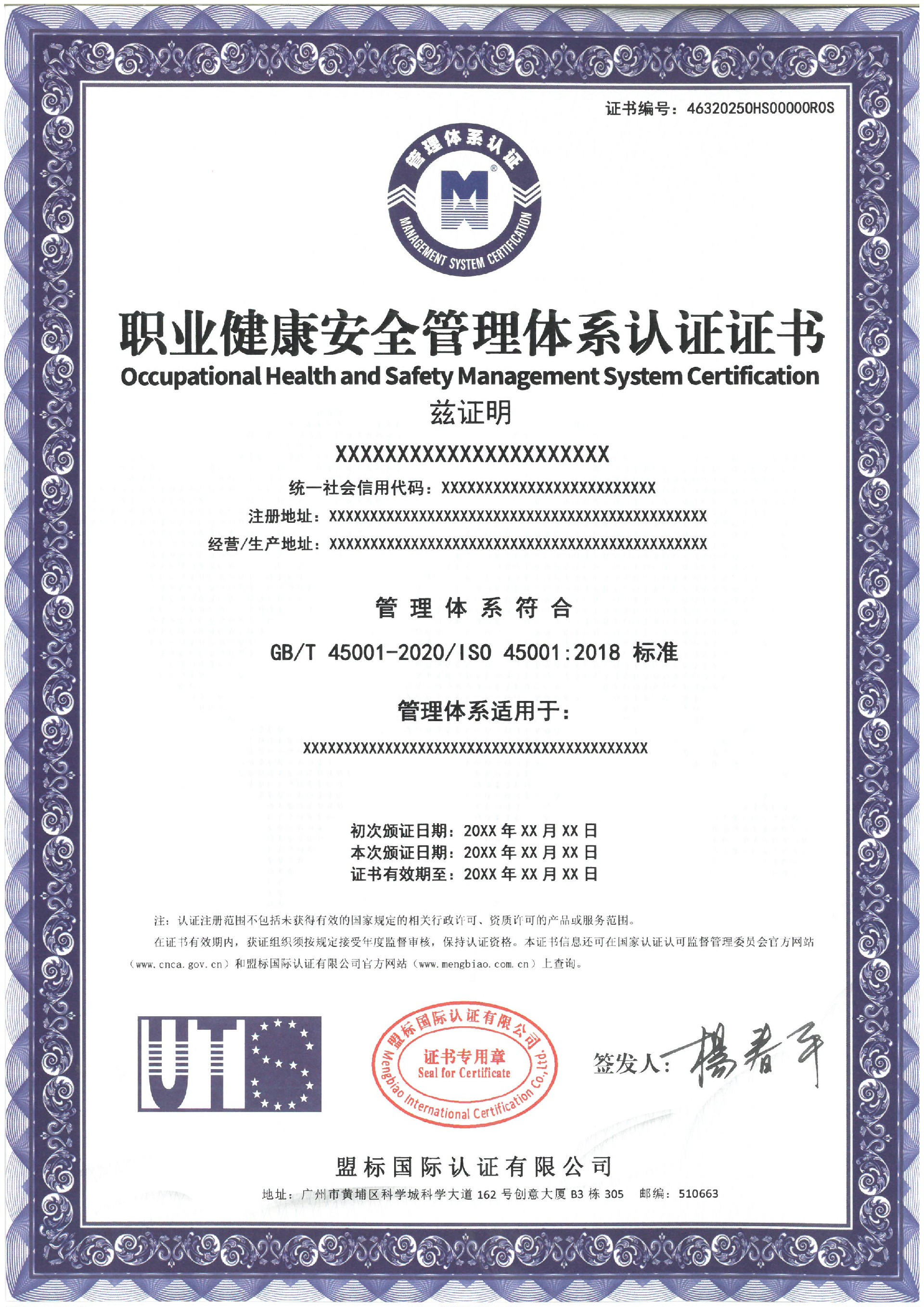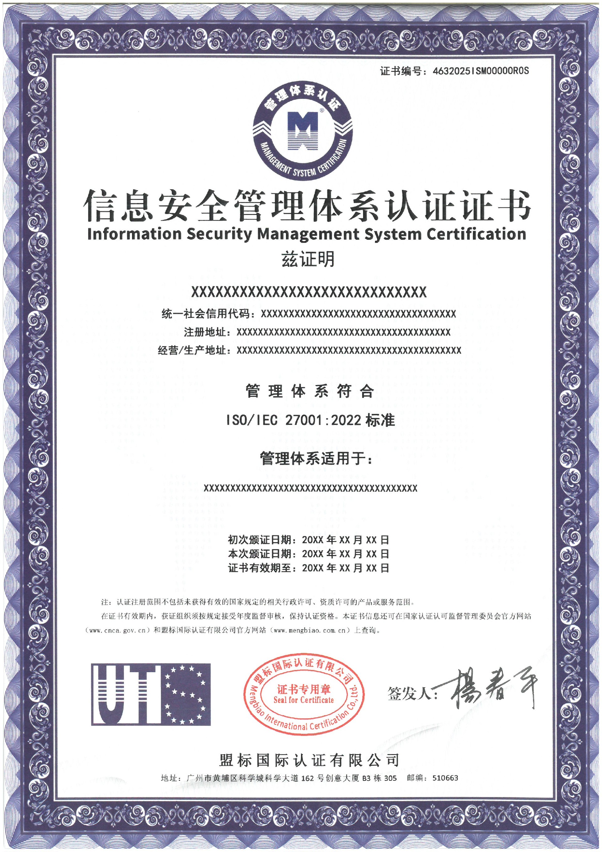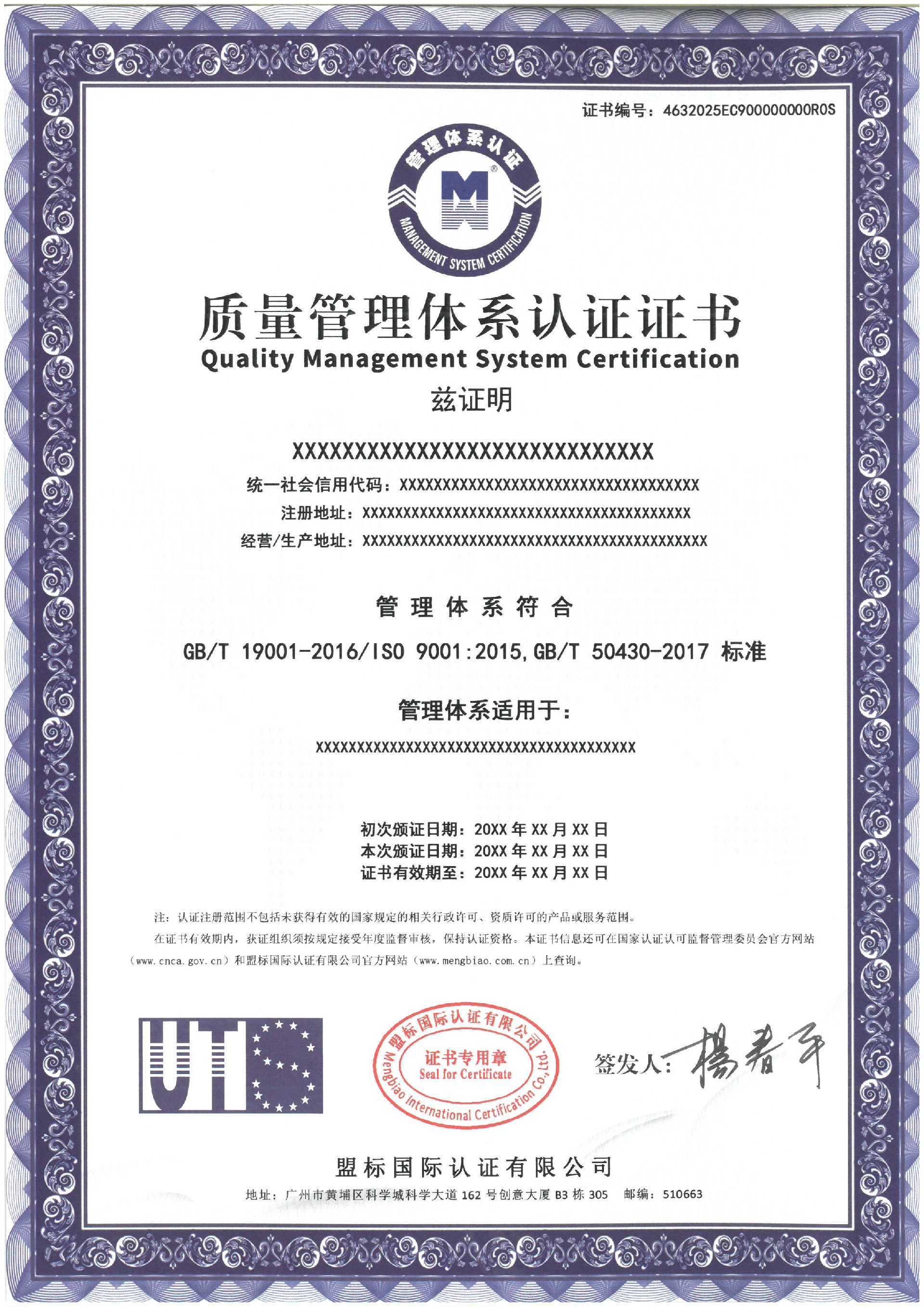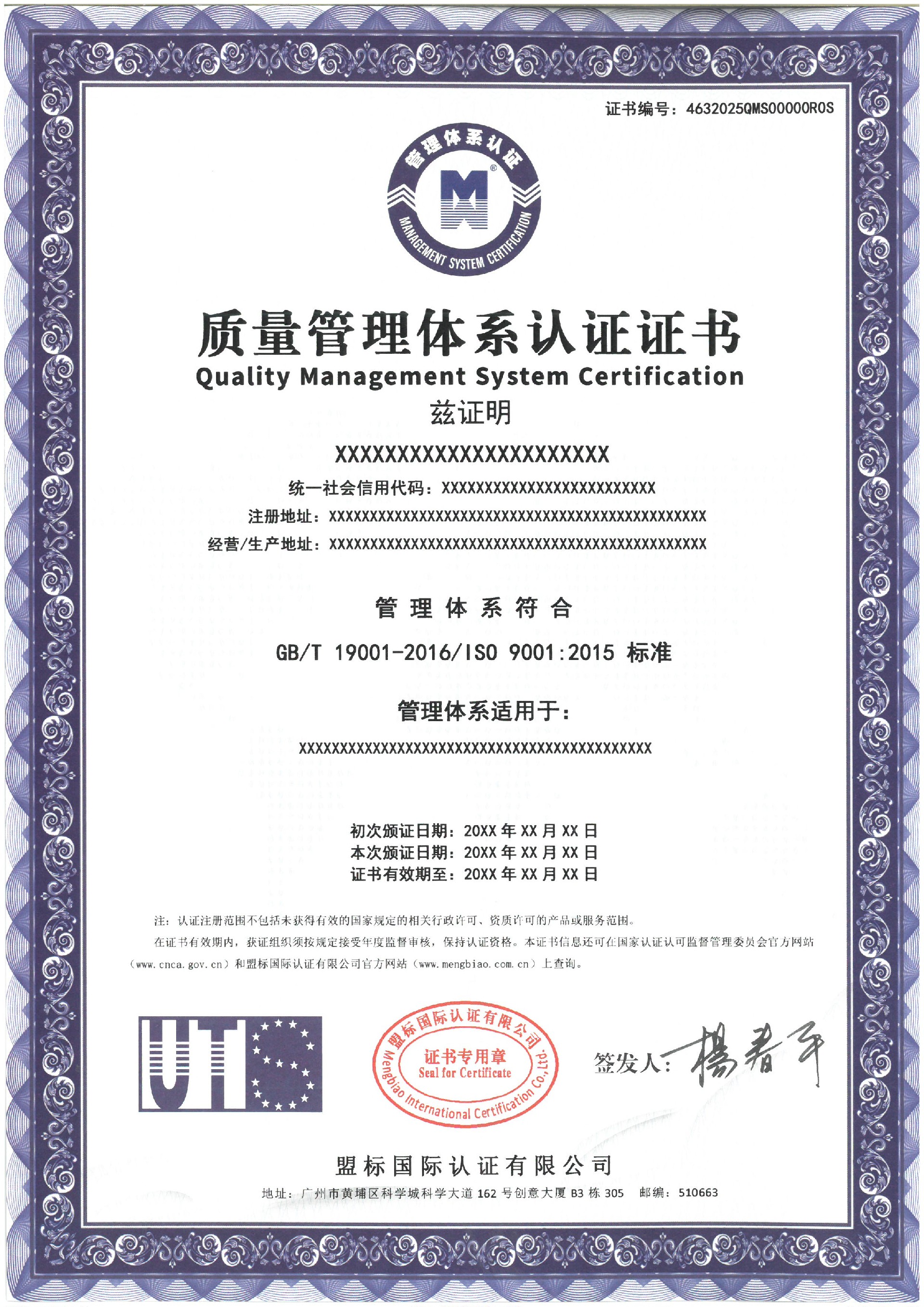質(zhì)量管理體系認證證書(QMS)-樣版