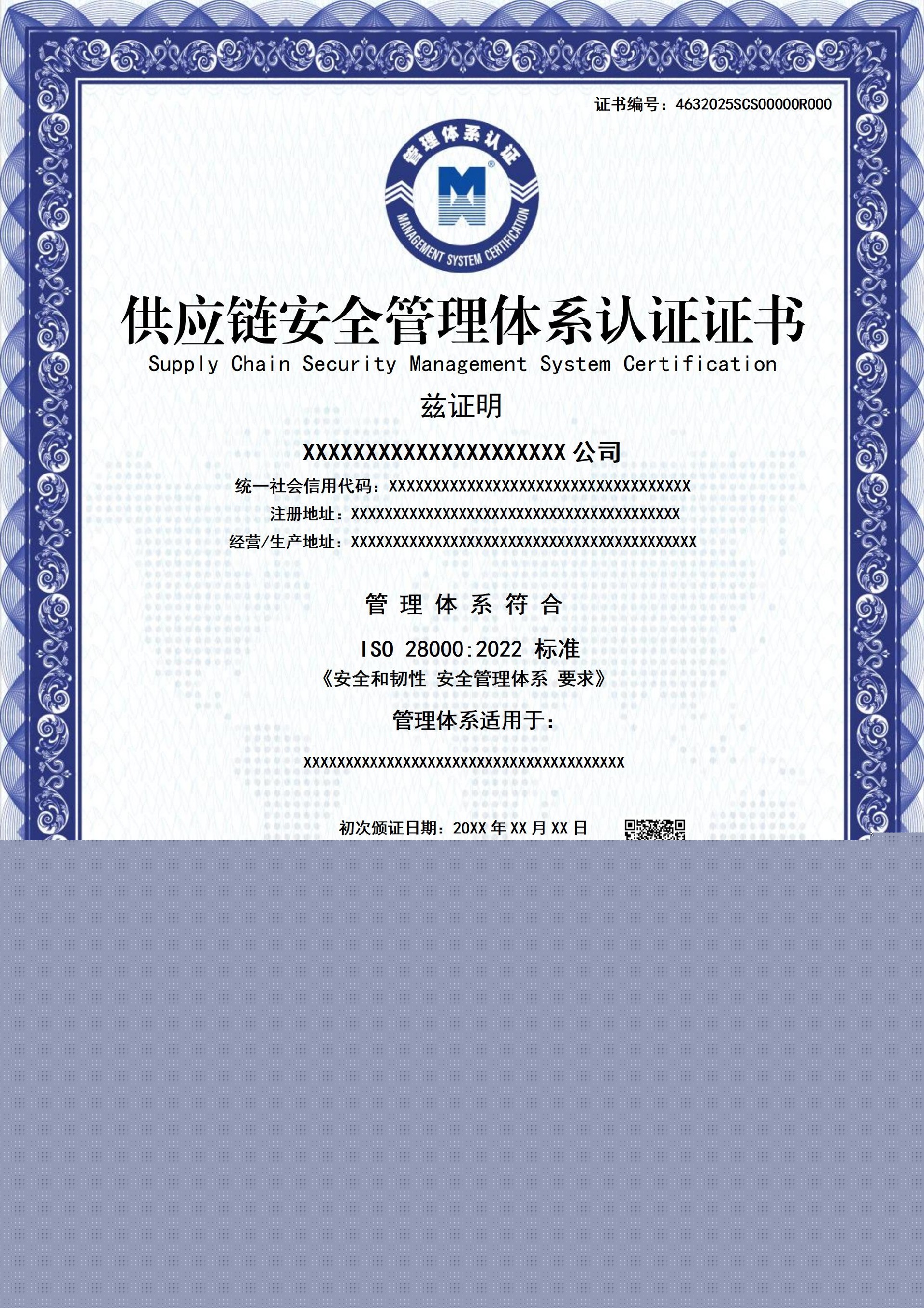 供應(yīng)鏈安全管理體系認(rèn)證證書(shū)-樣版