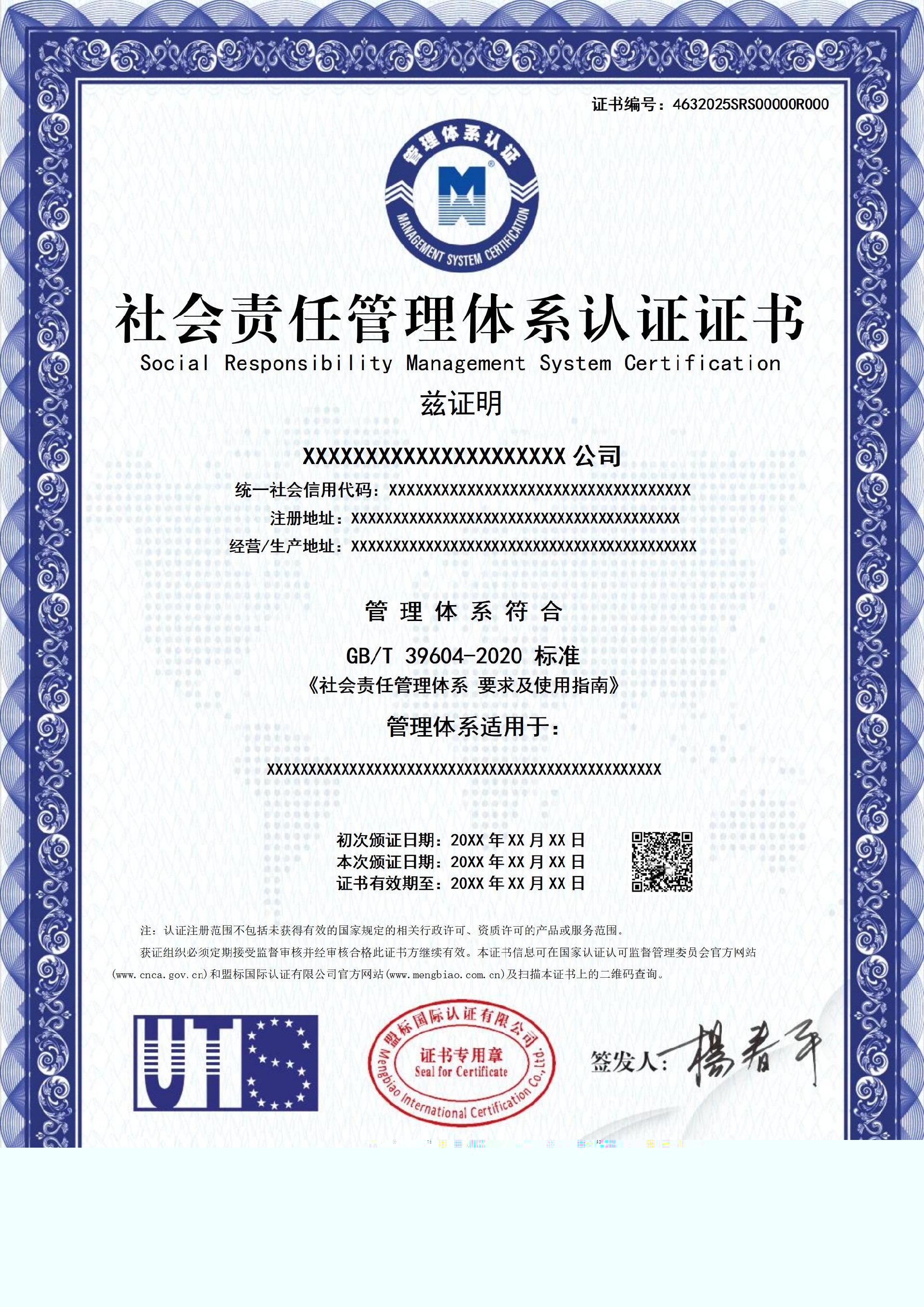 社會(huì)責(zé)任管理體系認(rèn)證證書(shū)-樣板