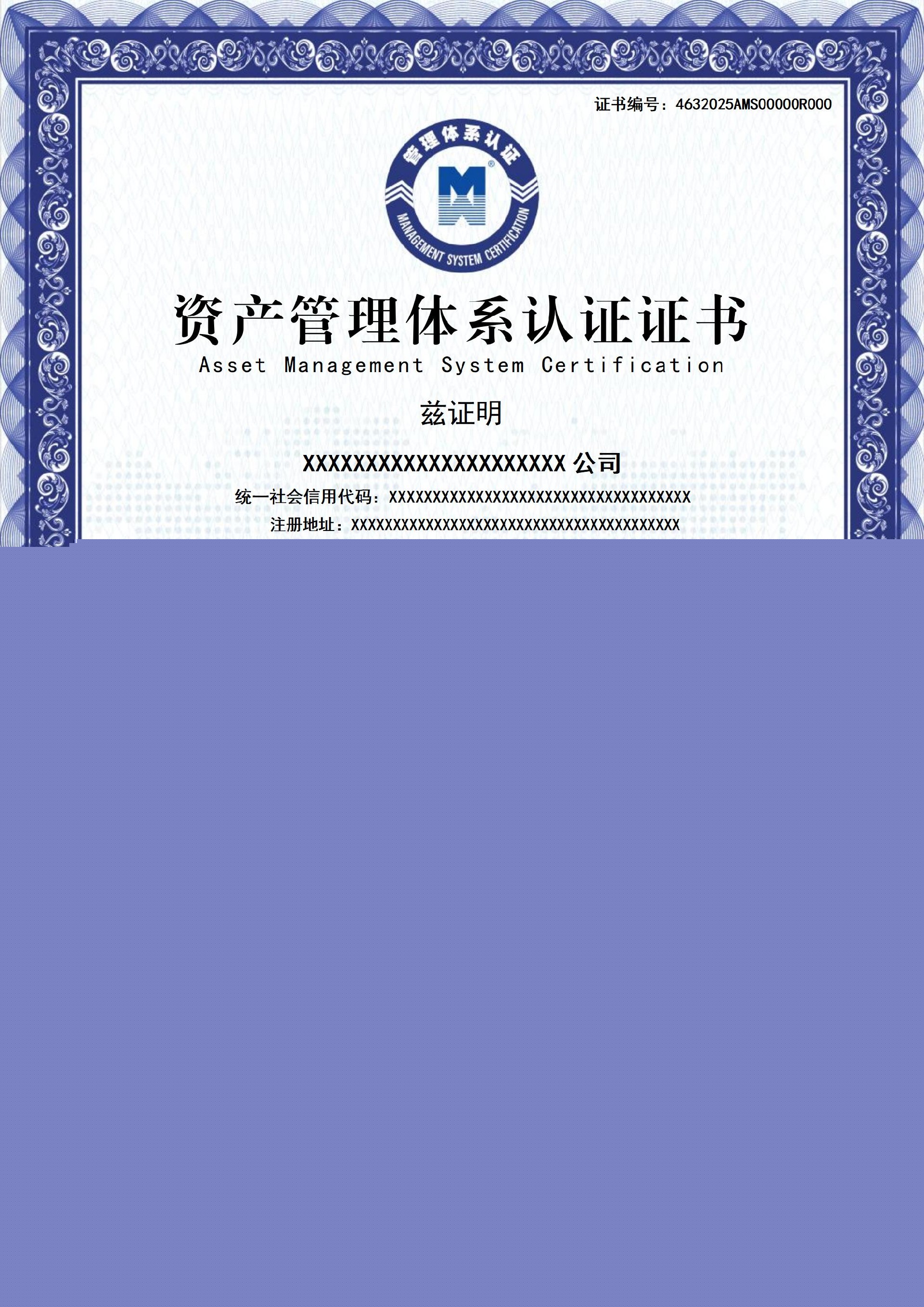 資產(chǎn)管理體系認(rèn)證證書(shū)-樣版
