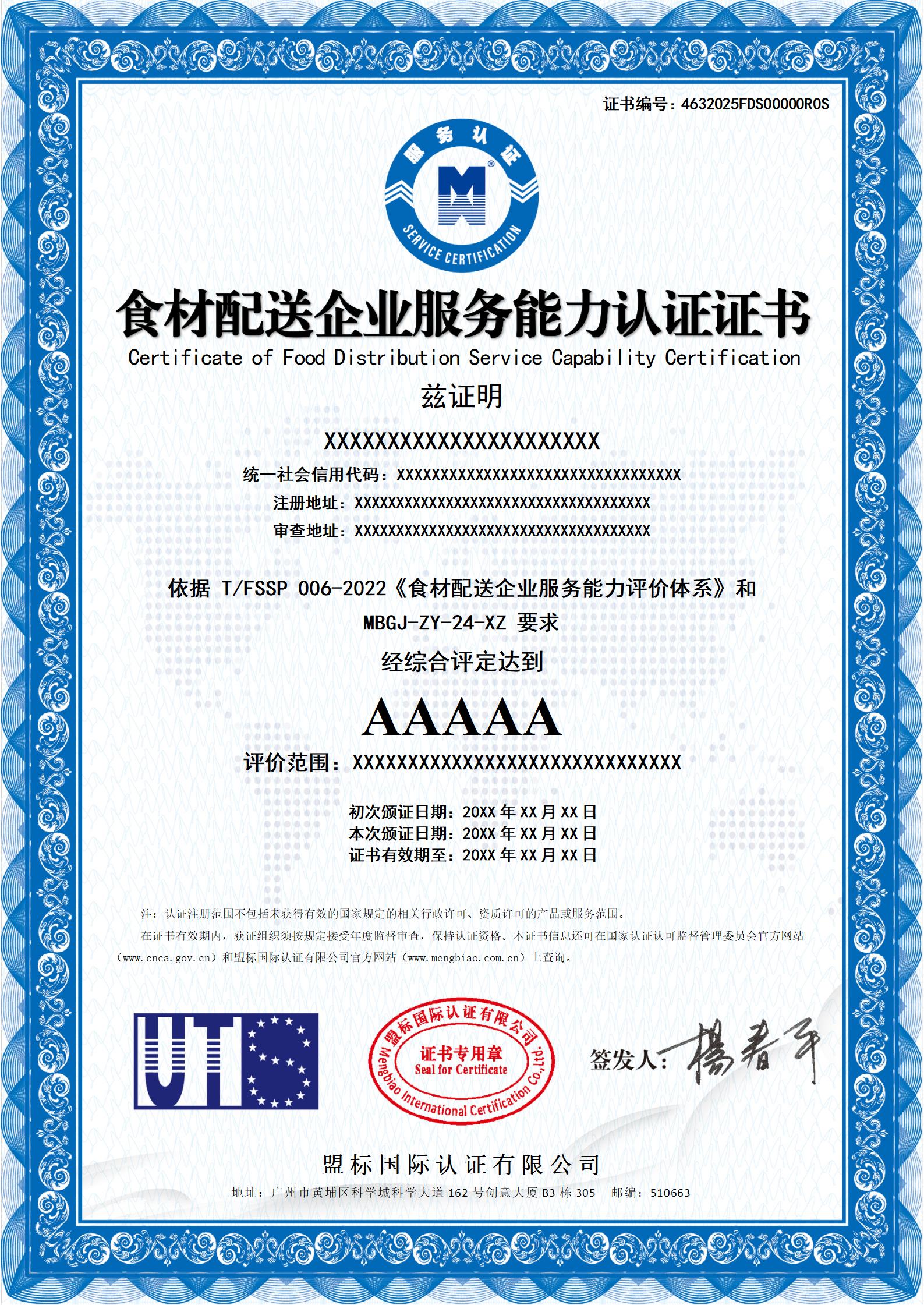 食材配送企業(yè)服務能力認證-樣版